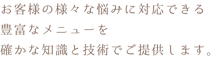 リピート率は90%以上!技術力が高いスタッフが多数在籍!お客様が自分にあったスタッフを指名でき、安心して長く通えるサロンです。