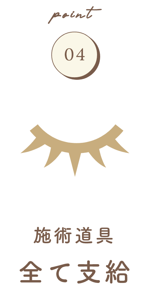 インストラクターの資格を持った教育者がしっかり指導教育をおこない、カリキュラムに合格したスタッフがアイリストとして活躍していますので、スタッフによる技術の差がなく高い技術を提供しています。